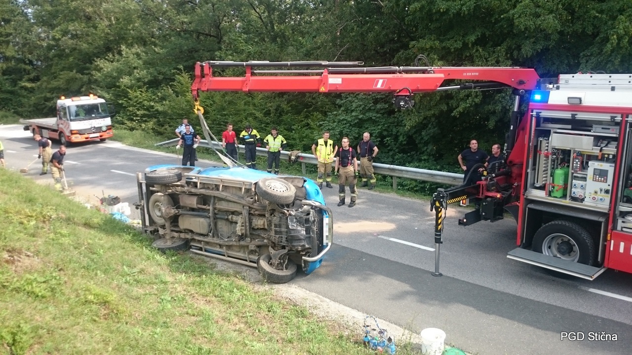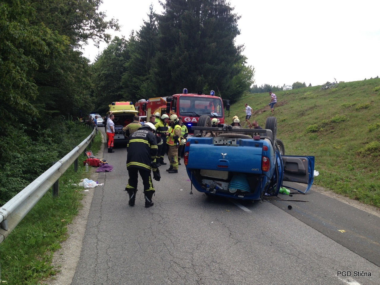 Gasilci PGD Stična smo ob prihodu zavarovali kraj nesreče ter do prihoda reševalcev oskrbovali poškodovano osebo. Po njihovem prihodu smo jim nudili pomoč pri oskrbi in prenosu ponesrečenca. Gasilci GB Ljubljana so vozilo postavili na kolesa, skupaj pa smo počistili posledice nesreče.