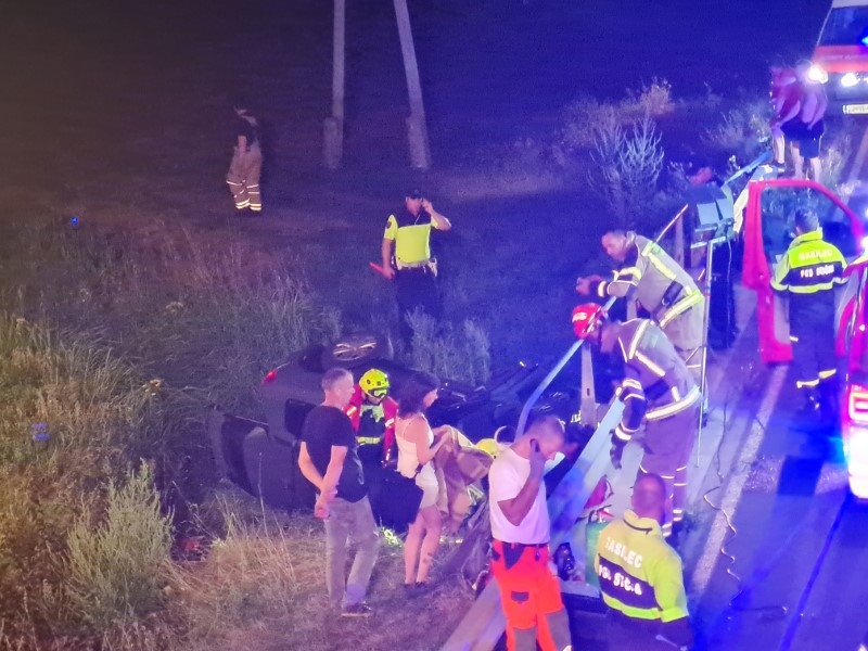 Voznik vozila s tujimi registrskimi tablicami je vozil v smeri Ivančne Gorice. Iz neznangea razloga je zadel cestno ograjo in se preko nje prevrnil s ceste na bok.
