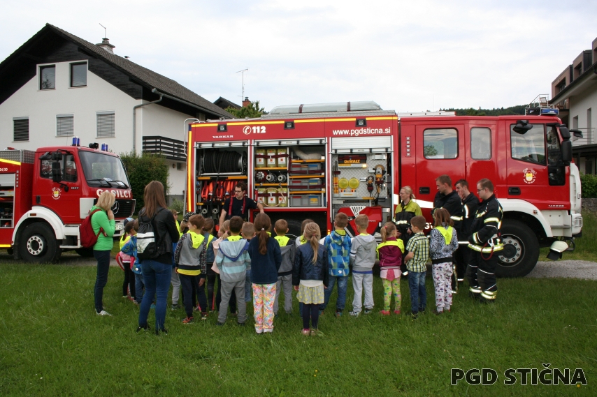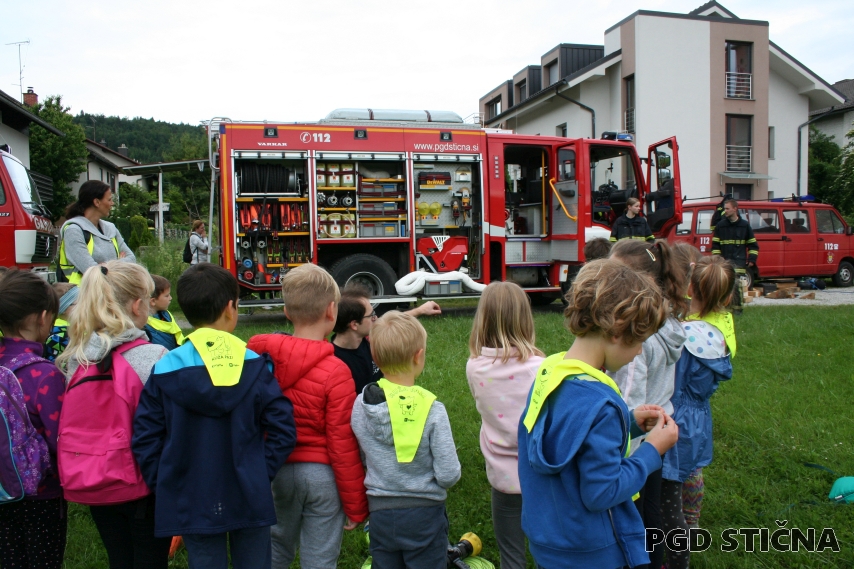 Danes je bilo travnato igrišče pred PGD Stična prizorišče izvedbe tehniškega dneva za vse prvošolce OŠ Stična in njenih podružnic. Zbralo se jih nad 100 učenk in učencev.