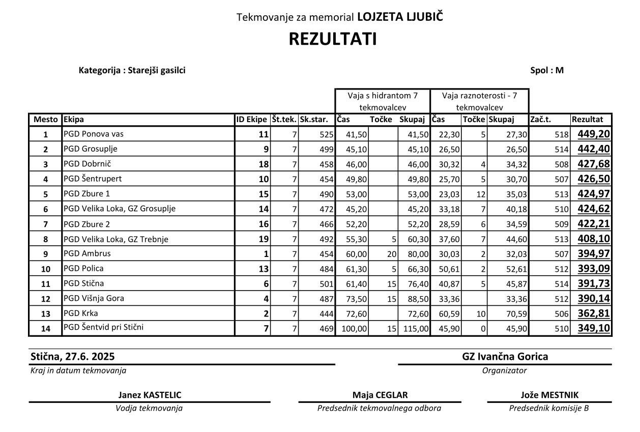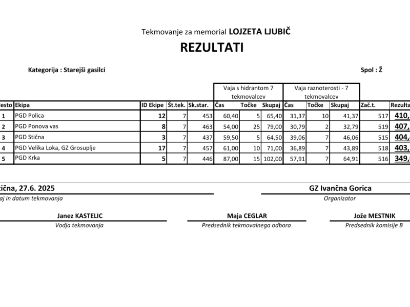 Na ta način se ohranja in prenaša njegova zapuščina na področju gasilstva tudi na prihodnje generacije. Na tekmovanju sodelujem v ekipi stiških starejših gasilk. Zame to ni le kot gasilska ali športna preizkušnja, je osebna zgodba, prepletena s čustvi, spomini in ponosom.