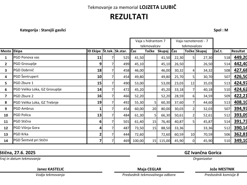 Tekmovanje se je končalo po urniku, a pravzaprav nikomur se ni mudilo domov. Nihče ni bil jezen ali razočaran zaradi kazenskih točk in pribitnih sekund. V senci garaž PGD Stična, ob hladni pijači in malici, smo se pomenkovali o tem in onem, pogosto v mislih na tovariša Lojzeta.