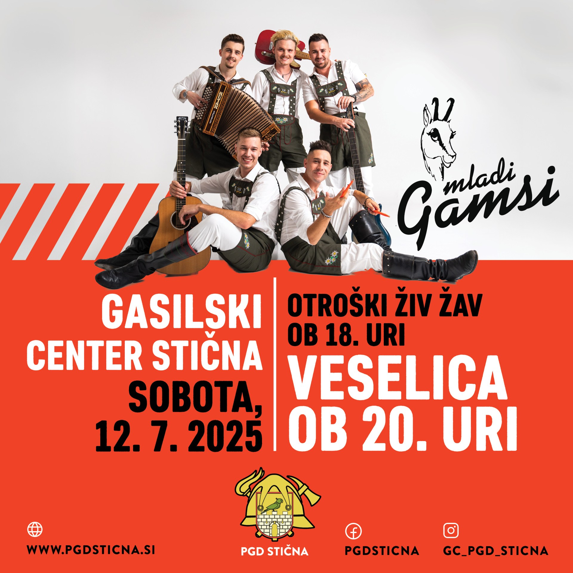Pa se vrnimo nazaj v leto 2025. To soboto, 12. julija, Prostovoljno gasilsko društvo Stična prireja veliko gasilsko veselico z MLADIMI GAMSI, ki bo združila vso skupnost in tudi zunanje obiskovalce.
