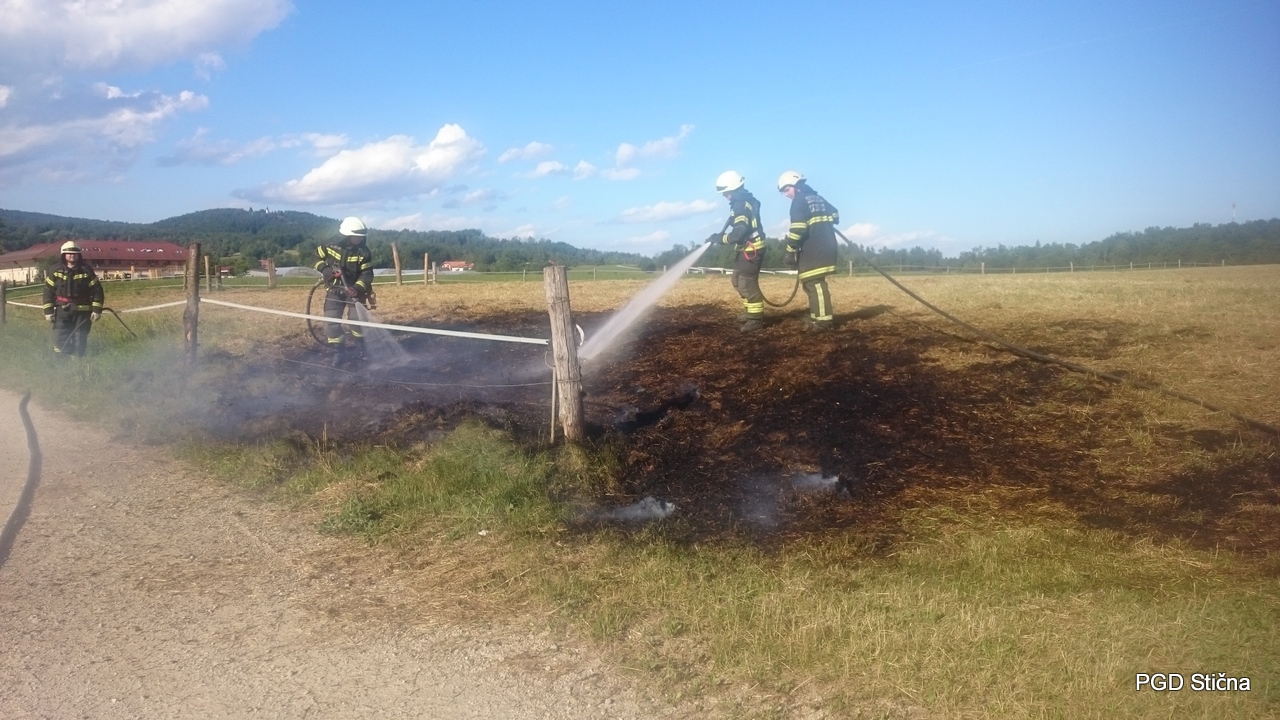 Ob 17.37 je v bližini naselja Stična zagorela slama na travniku. Gasilci PGD Stična in PGD Hudo–Ivančna Gorica so požar na površini 75 kvadratnih metrov pogasili.