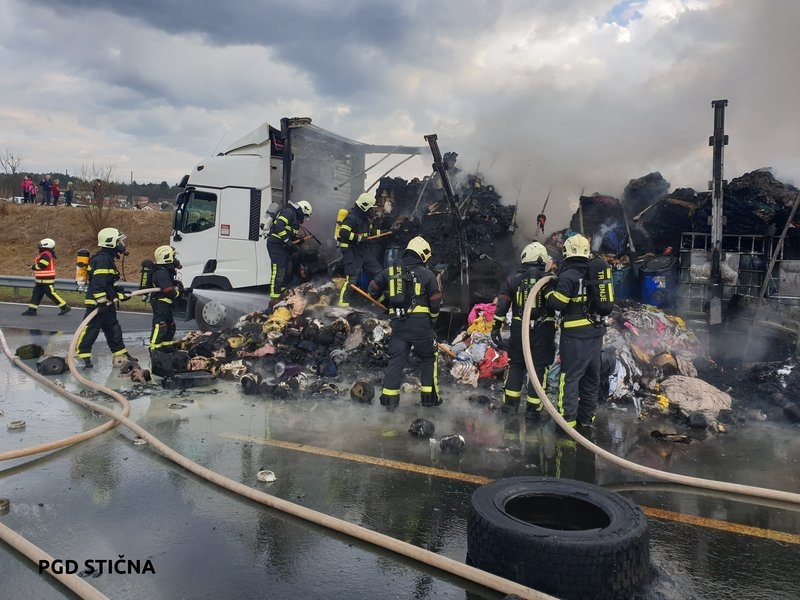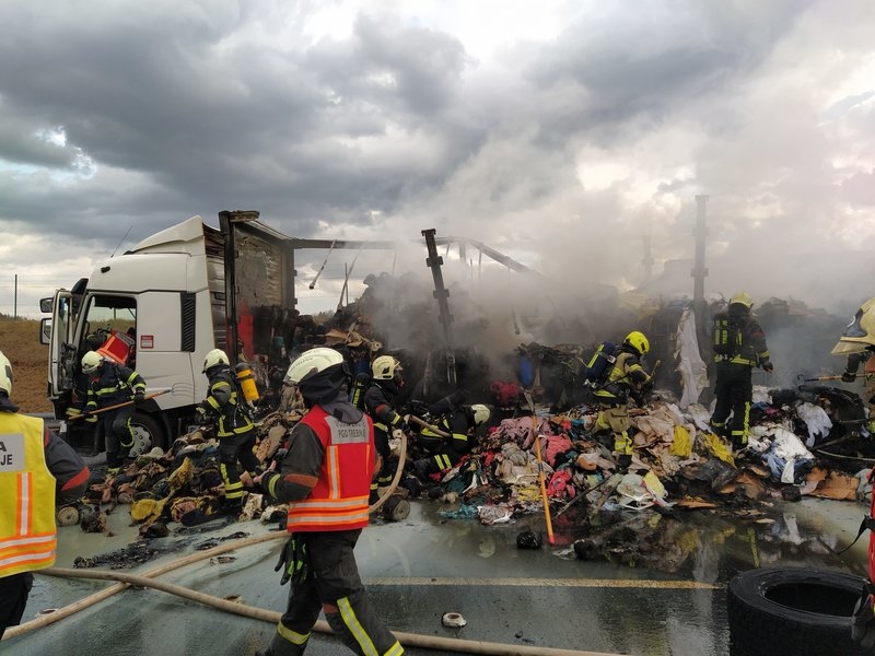 Tovorno vozilo je prevažalo tekstil in folijo. Posredovali so gasilci PGD Trebnje, Zagorica, Velika Loka, Veliki Gaber, Stična in GB Ljubljana.