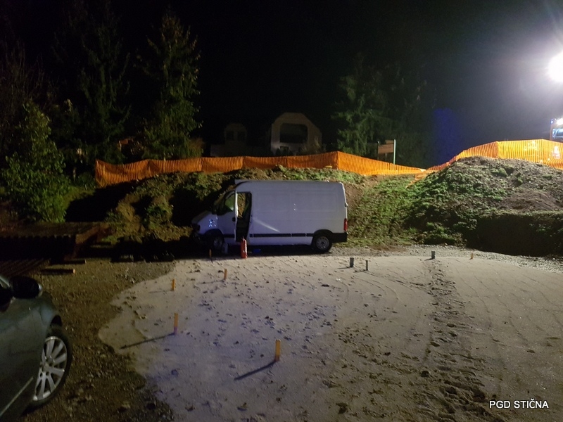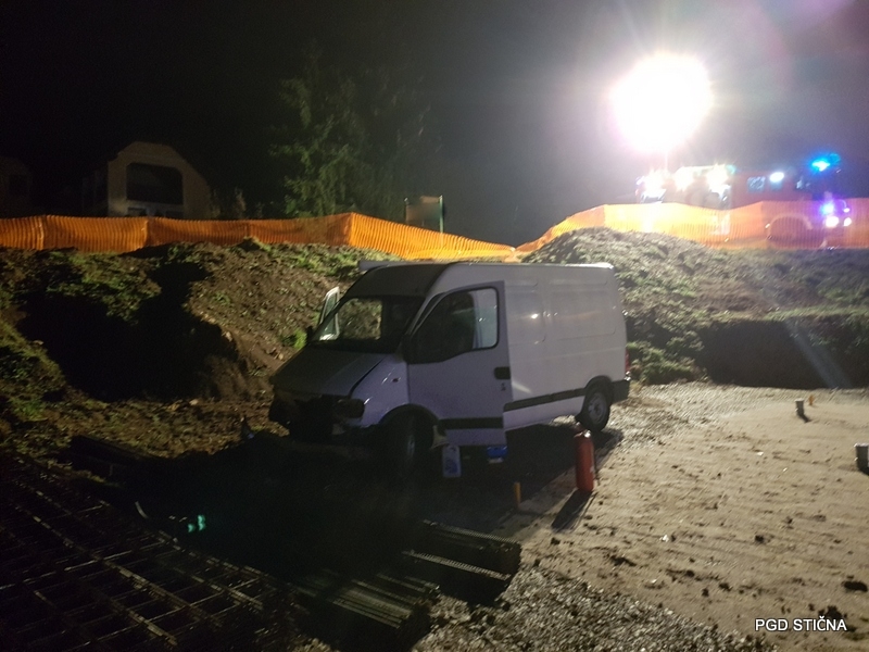 Ob 21.16 je v Viru pri Stični, občina Ivančna Gorica, kombinirano vozilo zapeljalo z ceste po brežini ter obstalo ob novogradnji objekta.