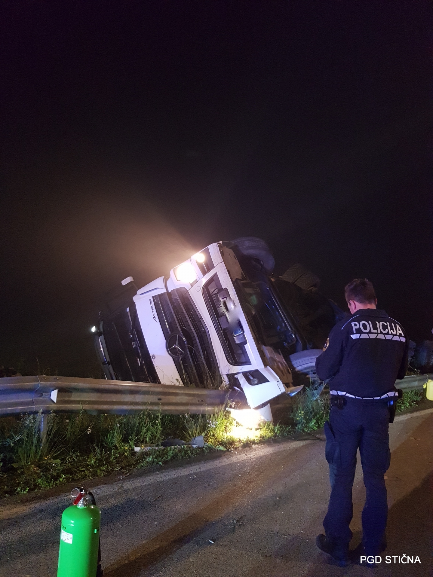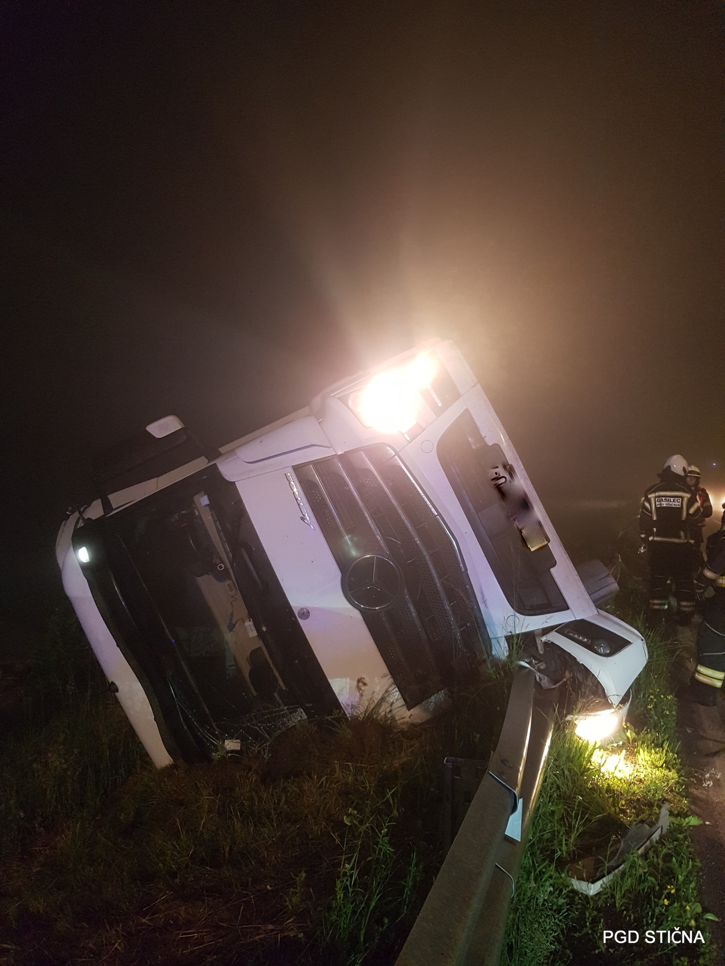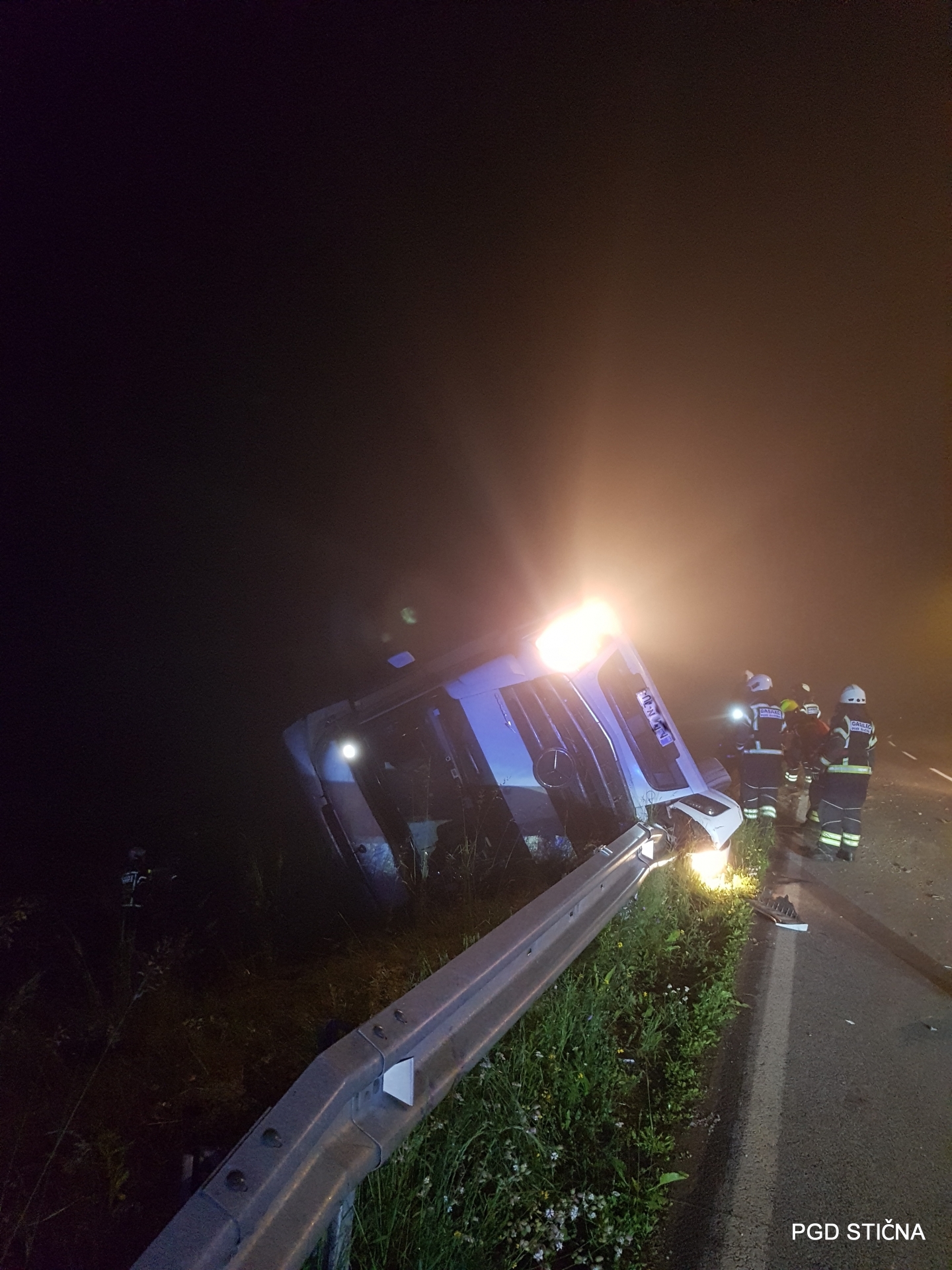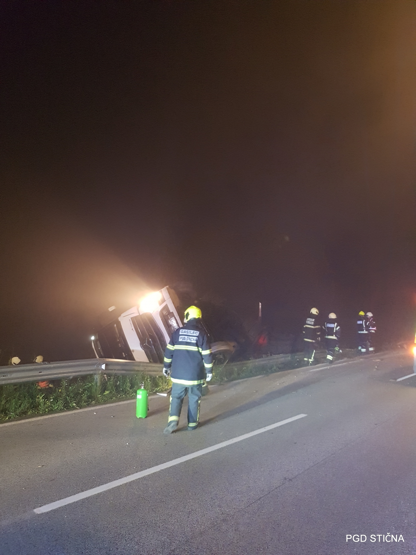 Gasilci PGD Stična in GB Ljubljana so zavarovali in osvetljevali kraj nesreče, odklopili akumulator in lovilci lovili ter z vpojnimi sredstvi posuli iztekle motorne tekočine.