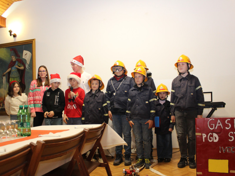 Letos smo del dogodka namenili požarni preventivi. Otroci so sodelovali v igri, kjer je simbolično zagorela smrekica, ob tem pa ostlim članom pokazali, kako hitro lahko pride do požara in kako pomembno je pravilno ravnanje ter preventiva v prazničnem času. Dogajanje je popestrila tudi glasbena točka s klavirjem, ki je ustvarila prav poseben praznični utrip in poskrbela za prijetno presenečenje vseh prisotnih.