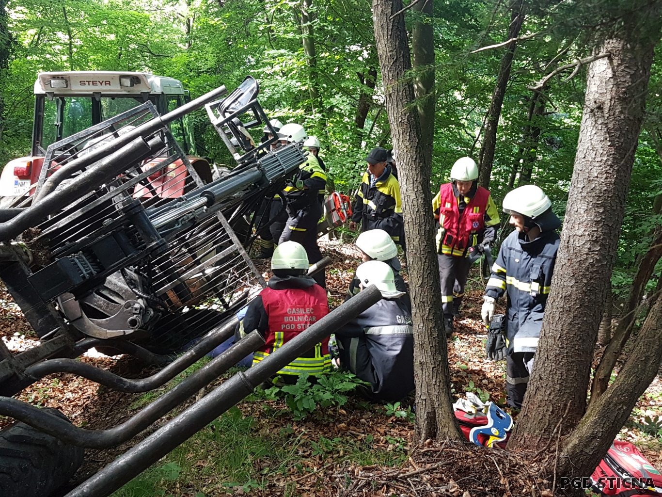 Vaja je potekala hkrati na dveh deloviščih. Na prvem se je prevrnila prazna gozdarska prikolica na kateri sta se peljala dva gozdna delavca. Eden od njiju si je pri prevračanju poškodoval nogo, drugi pa je ostal ujet pod prikolico, ker mu je prikolica ukleščila nogo.